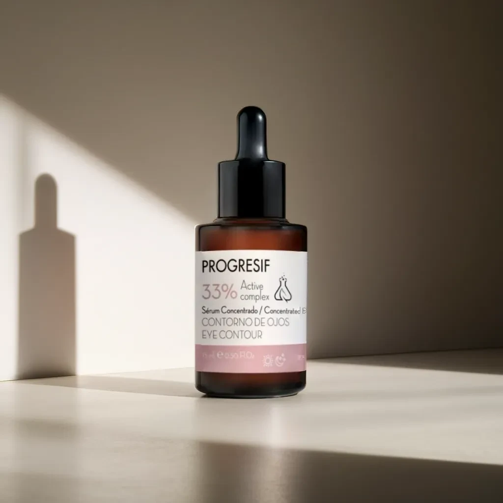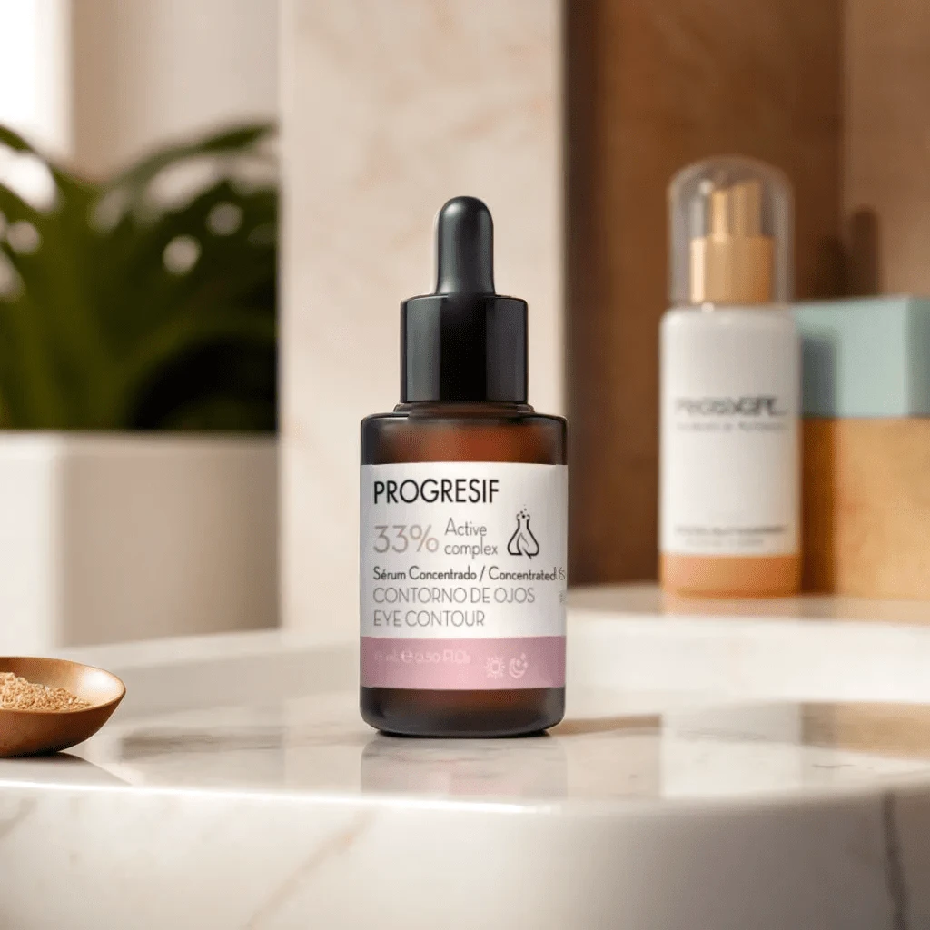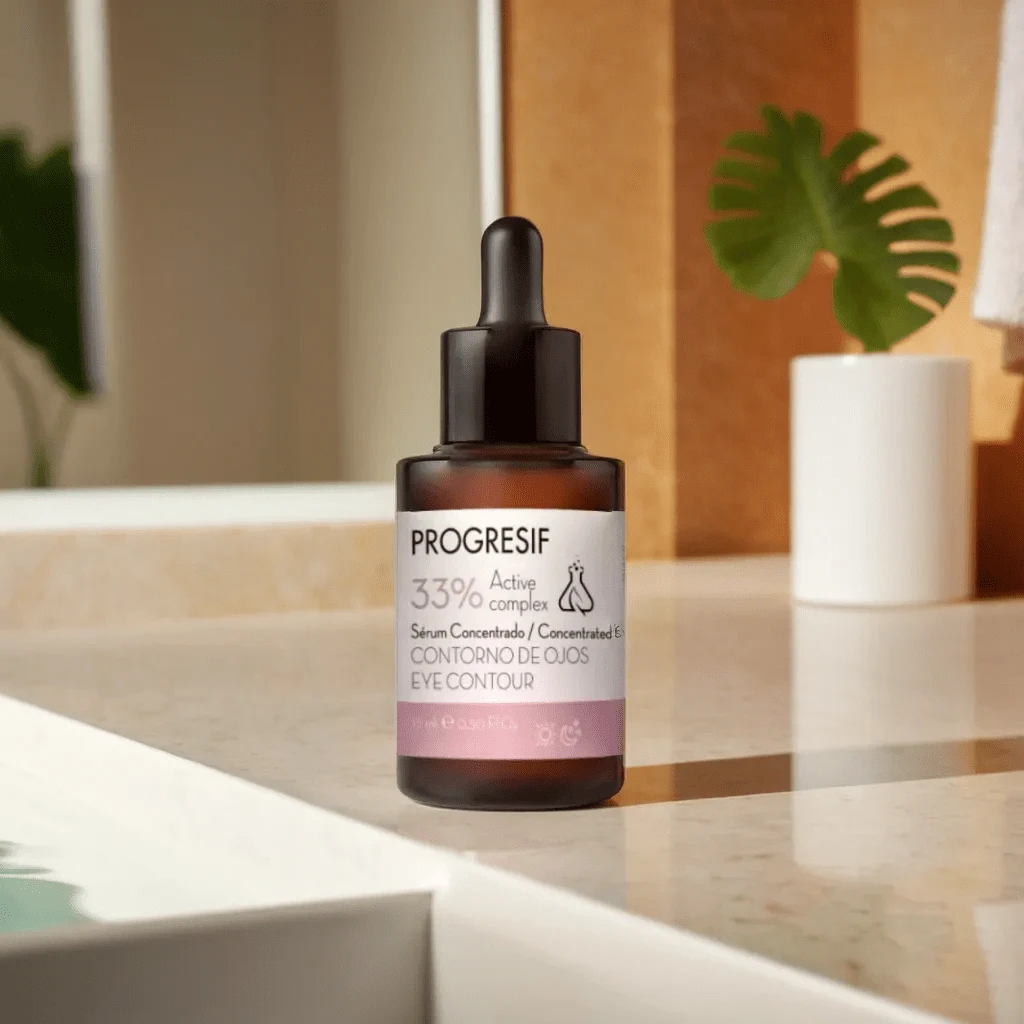 - A continuación, aplica el Serum Progresif en el contorno de los ojos y realiza un suave masaje con movimientos de lisaje desde el lagrimal hasta la sien. para finalizar, haz unos tecleteos sobre la zona.