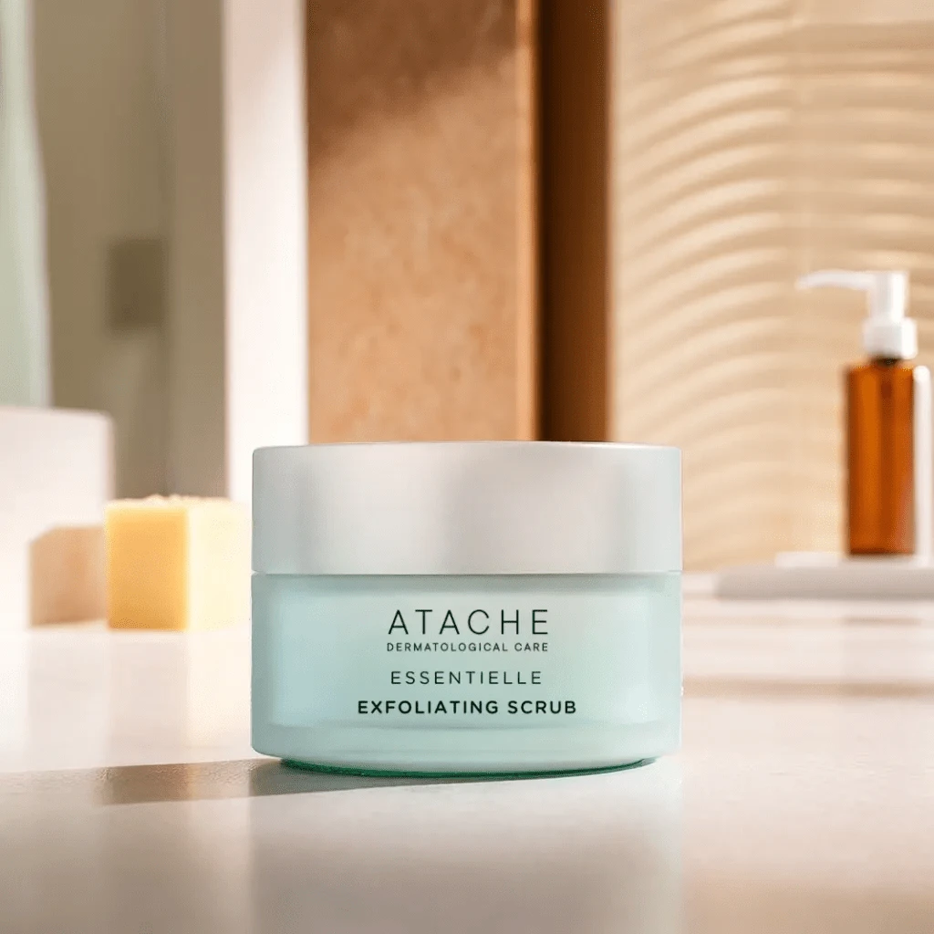 Exfoliating Scrub de Atache es un exfoliante facial de tamaño profesional ideal para realizar tratamientos de limpieza y desincrustantes en cabina. Con partículas de celulosa microcristalina elimina las células muertas, esto provoca que la piel esté más receptiva a los productos que se apliquen posteriormente