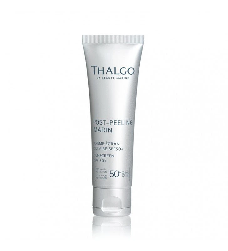 - Finalmente, antes de exponerte al sol aplica la Crema Protectora Solar SPF50+ de la línea Peeling Marin de Thalgo.
