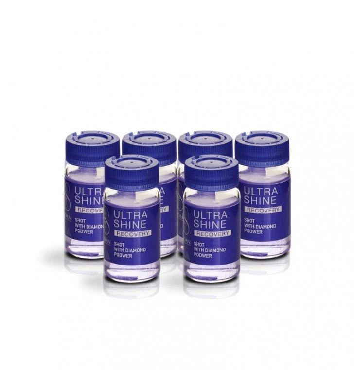 Recovery Ultra Shine de Lendan es un tratamiento para el cabello que aporta un extra de brillo, suavidad y volumen. Se encarga de proteger el cabello, ya que, esta formulado con un complejo activo de aminoácidos y extracto de semilla de uva blanca. Aporta un efecto flash que se ve de inmediato, pero que tiene duración a lo largo del tiempo. Contiene polvo de diamante para proporcionar ese brillo y luz característicos de este producto. Es un tratamiento específico para devolverle la luz y el brillo al cabello dañado, apagado y con falta de luminosidad.