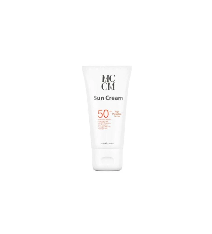 Sun Cream 50+ de MCCM es una crema solar hidratante y protectora. Protege tu piel de los efecto perjudiciales causados por la exposición al sol. Se puede aplicar sobre pieles sometidas a tratamiento quirúrgicos, láser o peelings químicos .