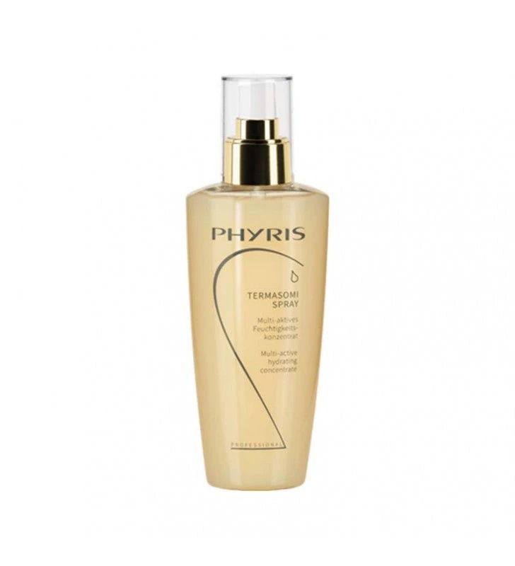 El spray de Termasomi es un cosmético de Phyris que se debe aplicar después de la rutina de limpieza y antes del resto de tratamientos. Su formulación consigue aumentar la eficacia global del resto de tratamientos. Contiene ingredientes termales encapsulados en liposomas con el objetivo de lograr una mayor receptividad de la piel. Logra alcanzar las capas más profundas del cutis para hidratar en profundidad y lograr una piel con más vitalidad, rellenando arrugas y líneas de expresión y combatiendo el envejecimiento. Además es un cosmético rico en oligoelementos y minerales y ayuda a regenerar y refensificar el rostro.